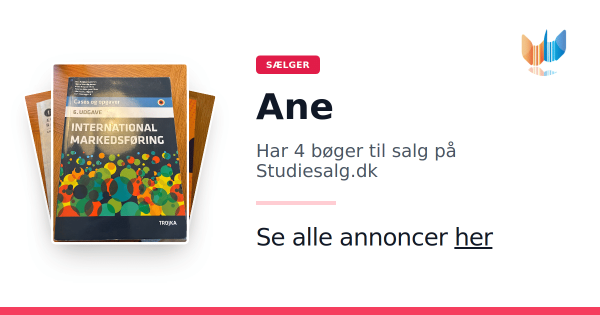 Sæt dine bøger gratis til salg på Studiesalg.dk. Det er tager få minutter, og vi står for betaling og fragt når de bliver solgt.