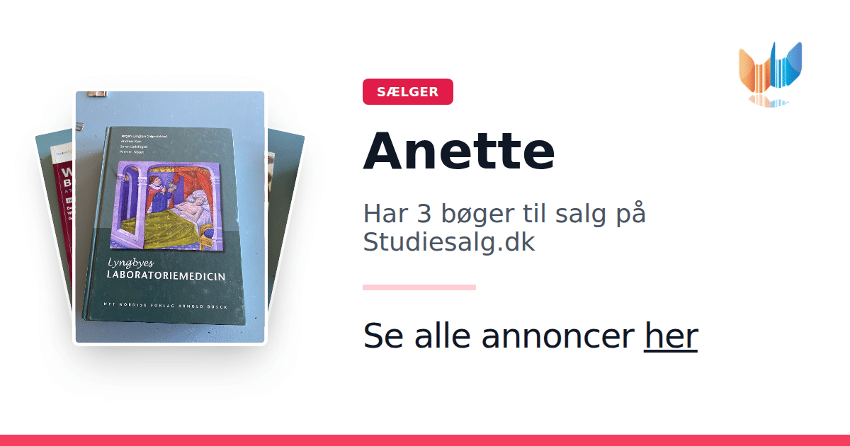 Sæt dine bøger gratis til salg på Studiesalg.dk. Det er tager få minutter, og vi står for betaling og fragt når de bliver solgt.