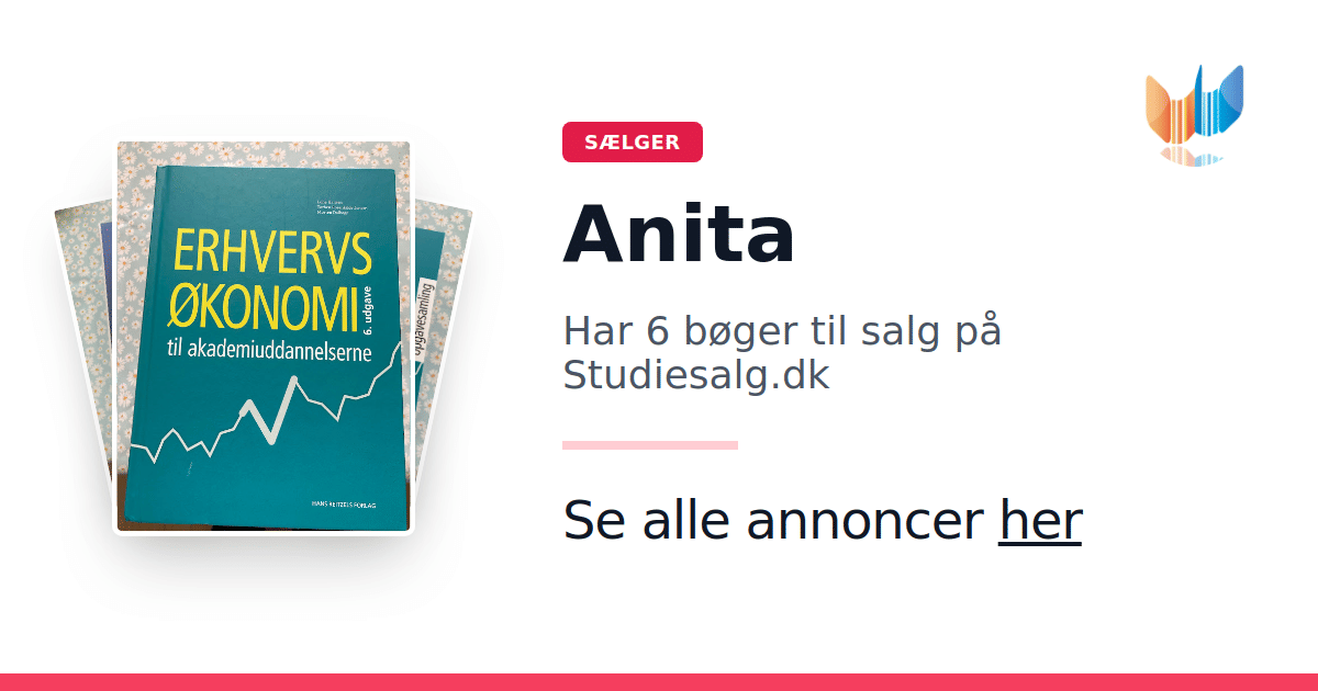 Sæt dine bøger gratis til salg på Studiesalg.dk. Det er tager få minutter, og vi står for betaling og fragt når de bliver solgt.