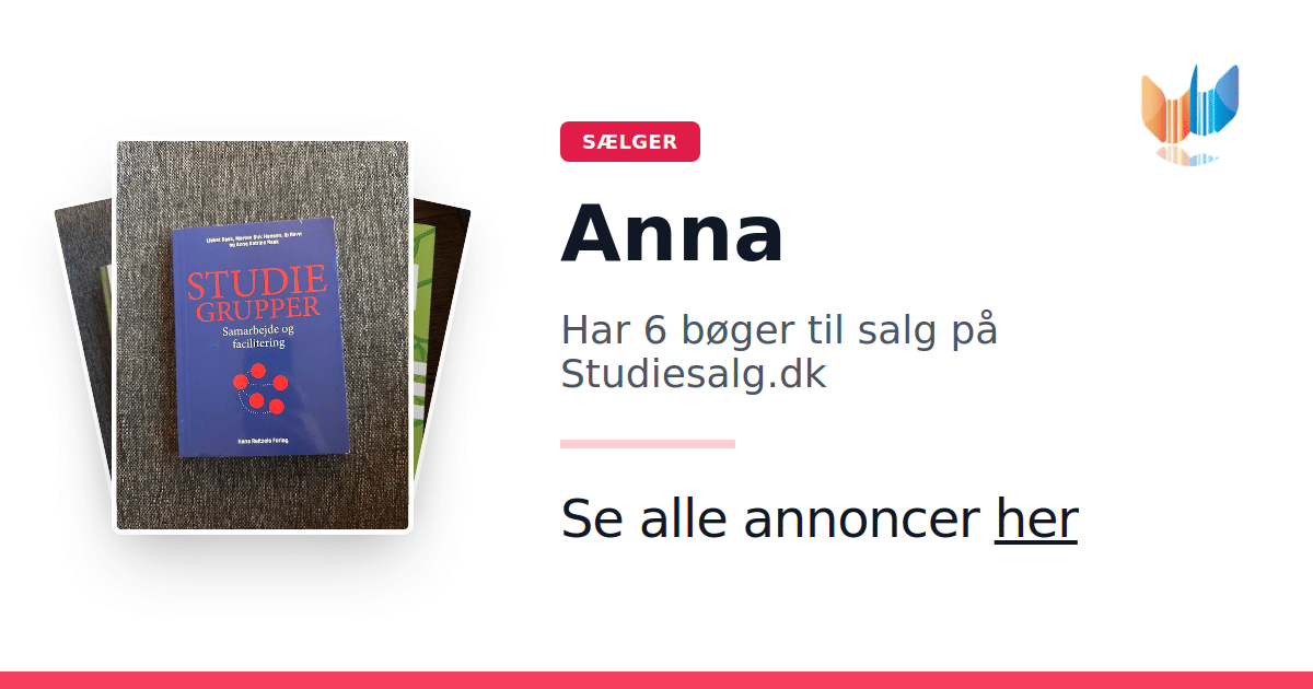 Sæt dine bøger gratis til salg på Studiesalg.dk. Det er tager få minutter, og vi står for betaling og fragt når de bliver solgt.