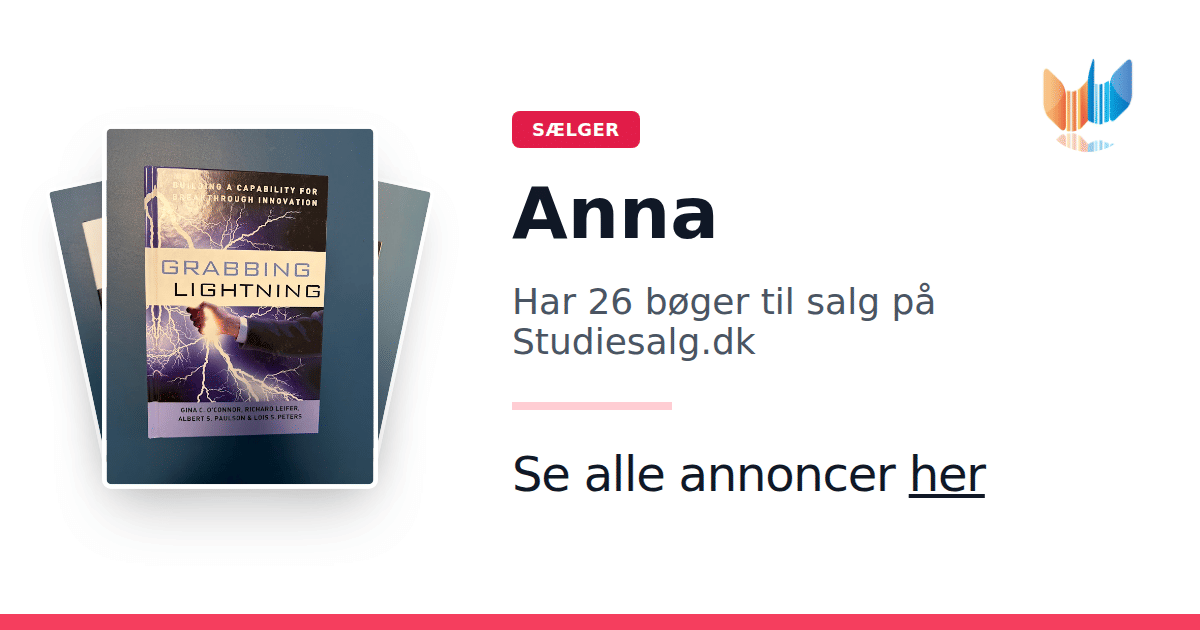 Sæt dine bøger gratis til salg på Studiesalg.dk. Det er tager få minutter, og vi står for betaling og fragt når de bliver solgt.