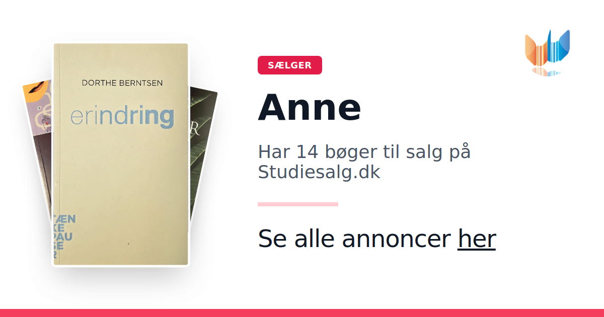 Sæt dine bøger gratis til salg på Studiesalg.dk. Det er tager få minutter, og vi står for betaling og fragt når de bliver solgt.