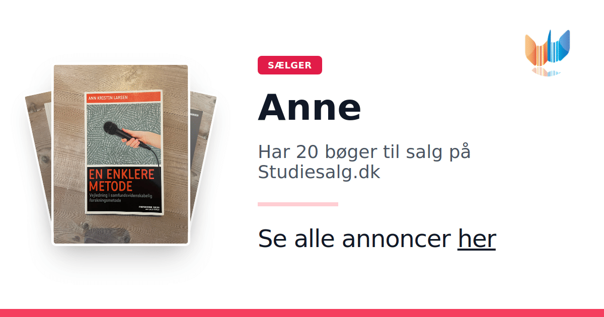 Sæt dine bøger gratis til salg på Studiesalg.dk. Det er tager få minutter, og vi står for betaling og fragt når de bliver solgt.