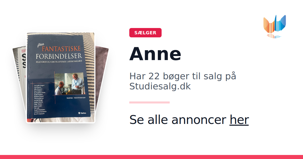 Sæt dine bøger gratis til salg på Studiesalg.dk. Det er tager få minutter, og vi står for betaling og fragt når de bliver solgt.
