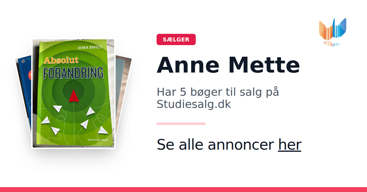 Sæt dine bøger gratis til salg på Studiesalg.dk. Det er tager få minutter, og vi står for betaling og fragt når de bliver solgt.