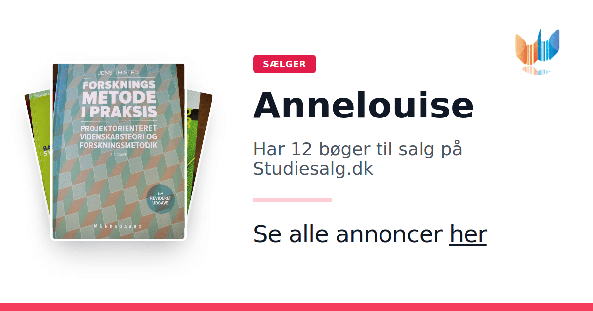 Sæt dine bøger gratis til salg på Studiesalg.dk. Det er tager få minutter, og vi står for betaling og fragt når de bliver solgt.