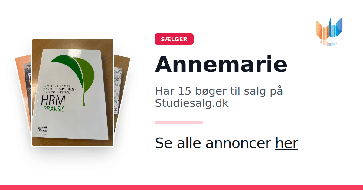 Sæt dine bøger gratis til salg på Studiesalg.dk. Det er tager få minutter, og vi står for betaling og fragt når de bliver solgt.