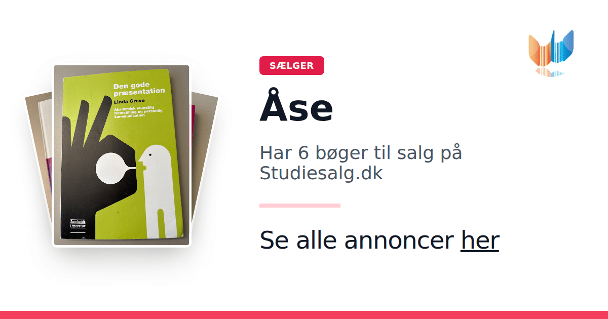 Sæt dine bøger gratis til salg på Studiesalg.dk. Det er tager få minutter, og vi står for betaling og fragt når de bliver solgt.