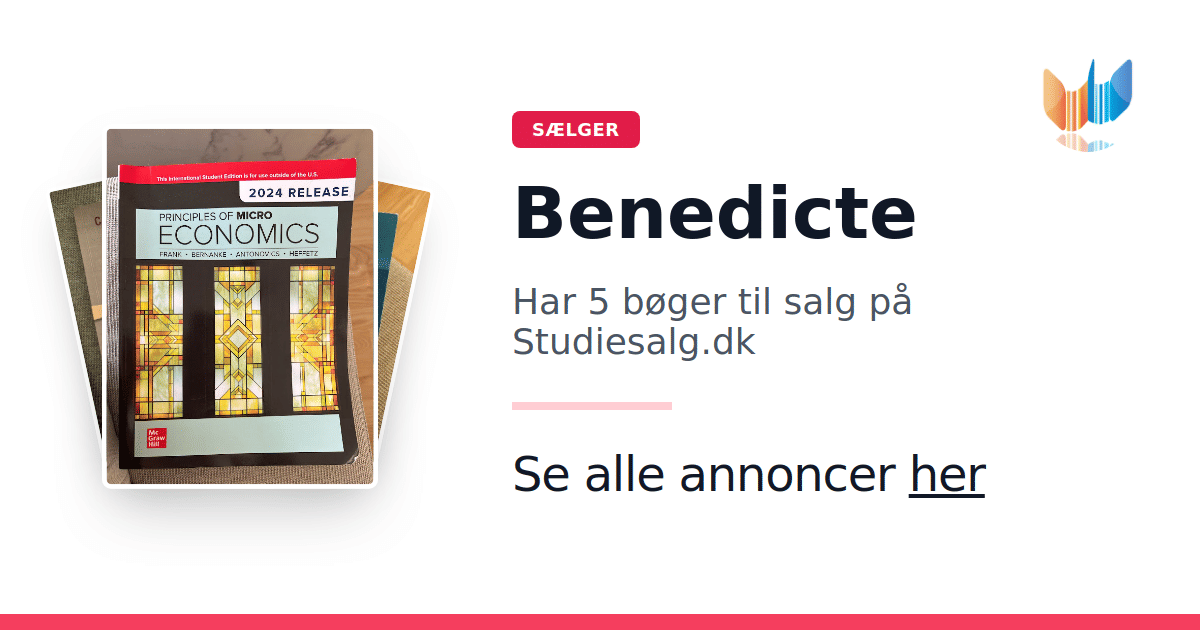 Sæt dine bøger gratis til salg på Studiesalg.dk. Det er tager få minutter, og vi står for betaling og fragt når de bliver solgt.