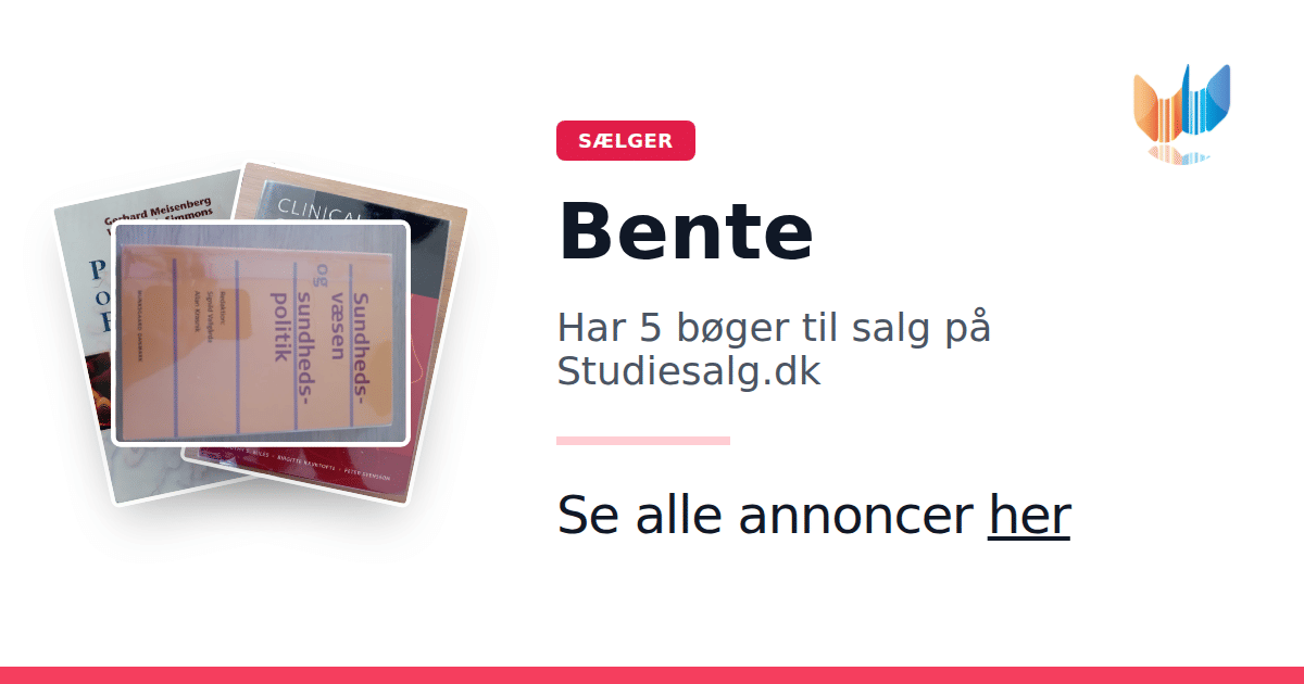 Sæt dine bøger gratis til salg på Studiesalg.dk. Det er tager få minutter, og vi står for betaling og fragt når de bliver solgt.