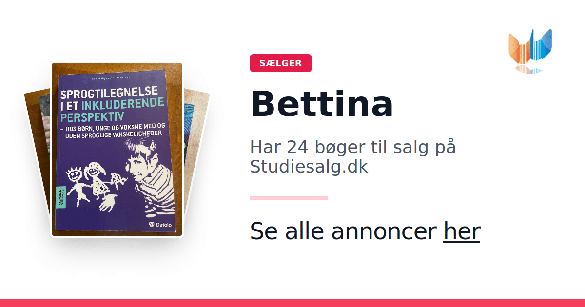 Sæt dine bøger gratis til salg på Studiesalg.dk. Det er tager få minutter, og vi står for betaling og fragt når de bliver solgt.