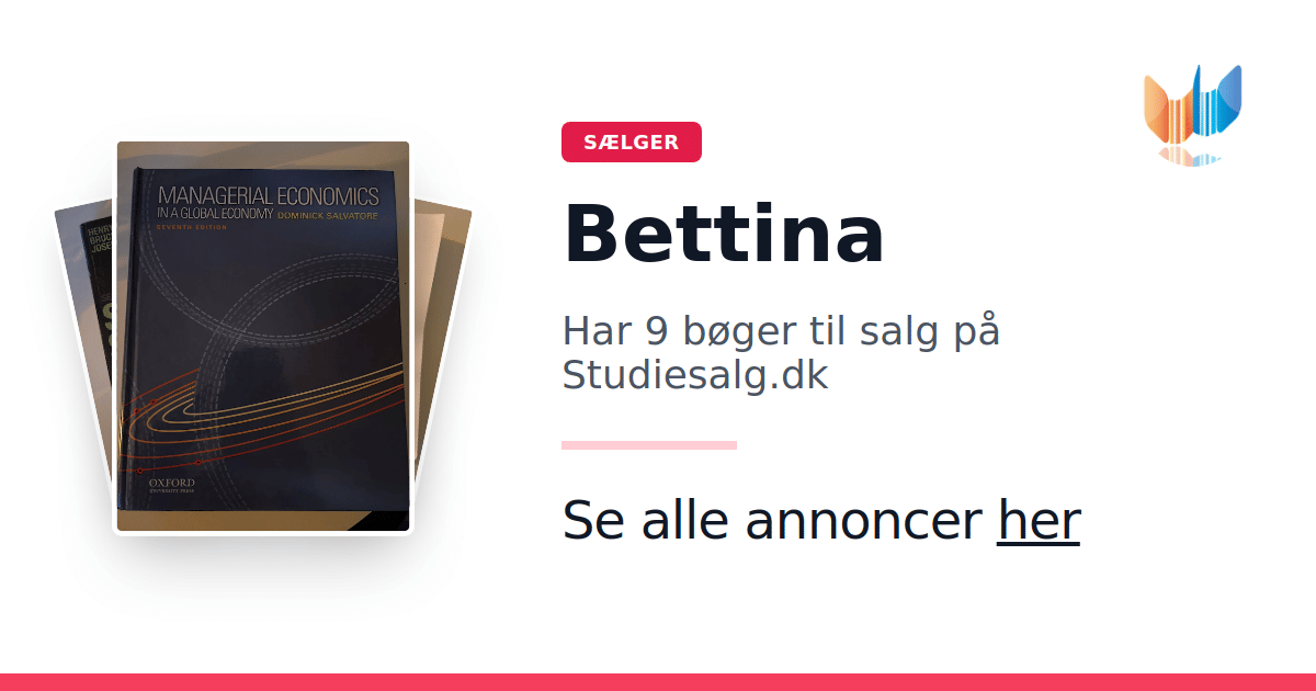 Sæt dine bøger gratis til salg på Studiesalg.dk. Det er tager få minutter, og vi står for betaling og fragt når de bliver solgt.