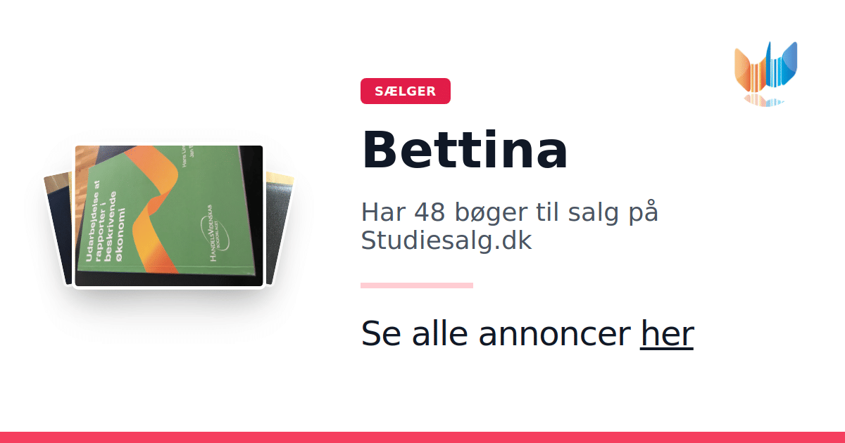 Sæt dine bøger gratis til salg på Studiesalg.dk. Det er tager få minutter, og vi står for betaling og fragt når de bliver solgt.