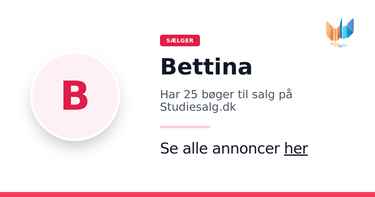 Sæt dine bøger gratis til salg på Studiesalg.dk. Det er tager få minutter, og vi står for betaling og fragt når de bliver solgt.