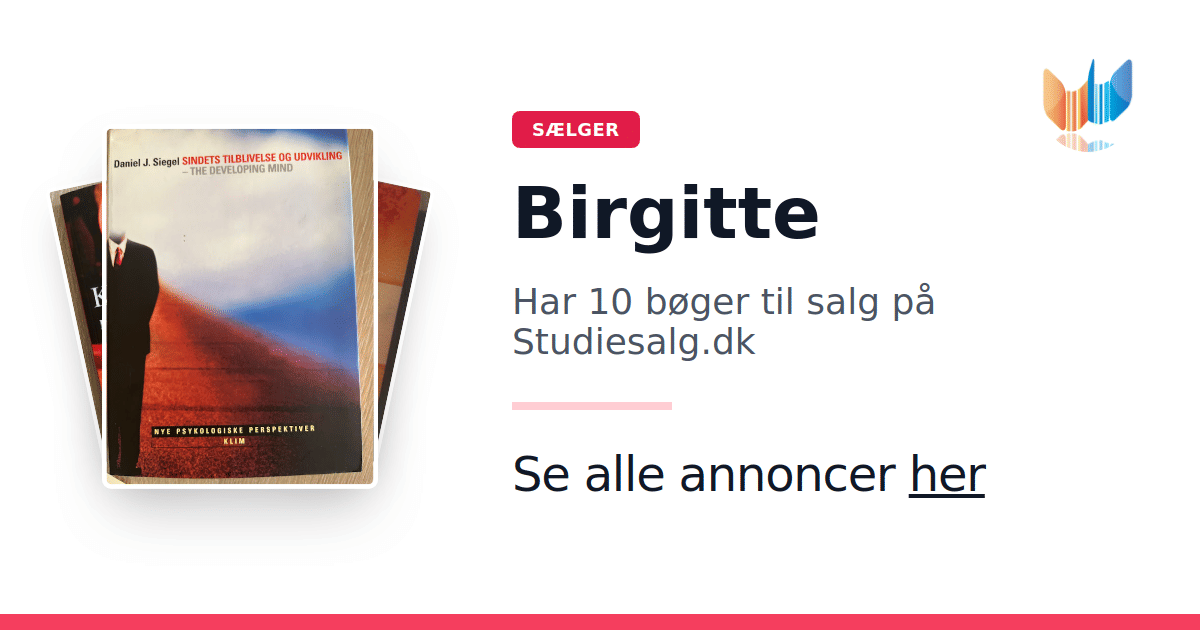 Sæt dine bøger gratis til salg på Studiesalg.dk. Det er tager få minutter, og vi står for betaling og fragt når de bliver solgt.