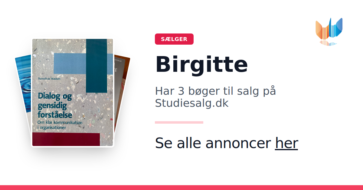 Sæt dine bøger gratis til salg på Studiesalg.dk. Det er tager få minutter, og vi står for betaling og fragt når de bliver solgt.