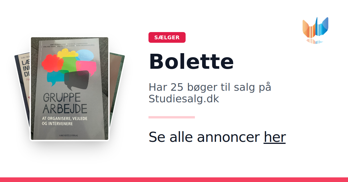 Sæt dine bøger gratis til salg på Studiesalg.dk. Det er tager få minutter, og vi står for betaling og fragt når de bliver solgt.