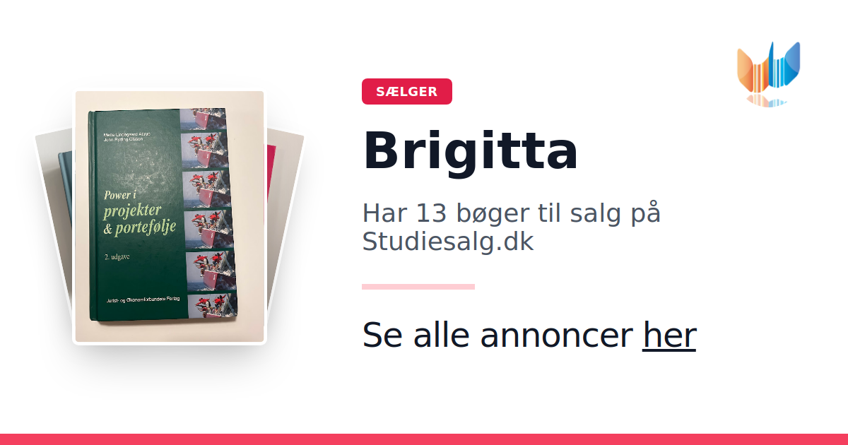 Sæt dine bøger gratis til salg på Studiesalg.dk. Det er tager få minutter, og vi står for betaling og fragt når de bliver solgt.