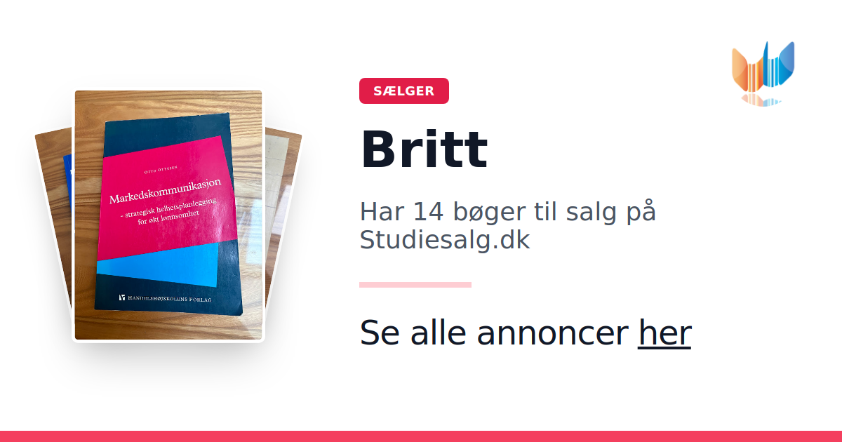 Sæt dine bøger gratis til salg på Studiesalg.dk. Det er tager få minutter, og vi står for betaling og fragt når de bliver solgt.