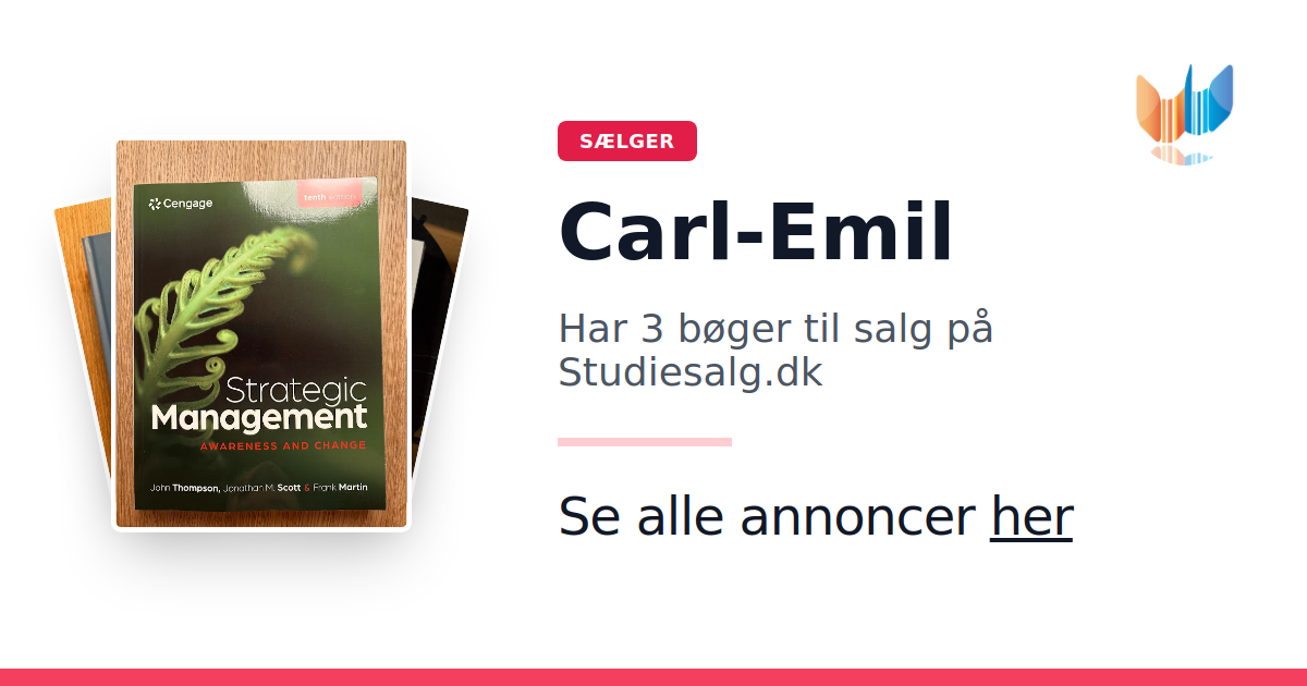 Sæt dine bøger gratis til salg på Studiesalg.dk. Det er tager få minutter, og vi står for betaling og fragt når de bliver solgt.