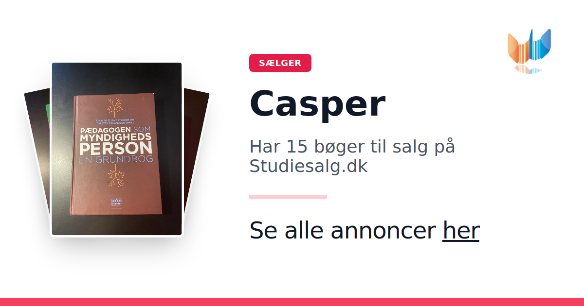 Sæt dine bøger gratis til salg på Studiesalg.dk. Det er tager få minutter, og vi står for betaling og fragt når de bliver solgt.