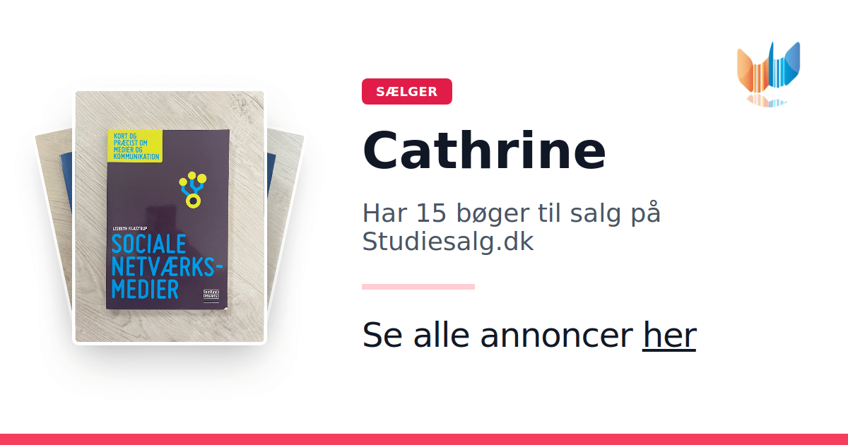Sæt dine bøger gratis til salg på Studiesalg.dk. Det er tager få minutter, og vi står for betaling og fragt når de bliver solgt.