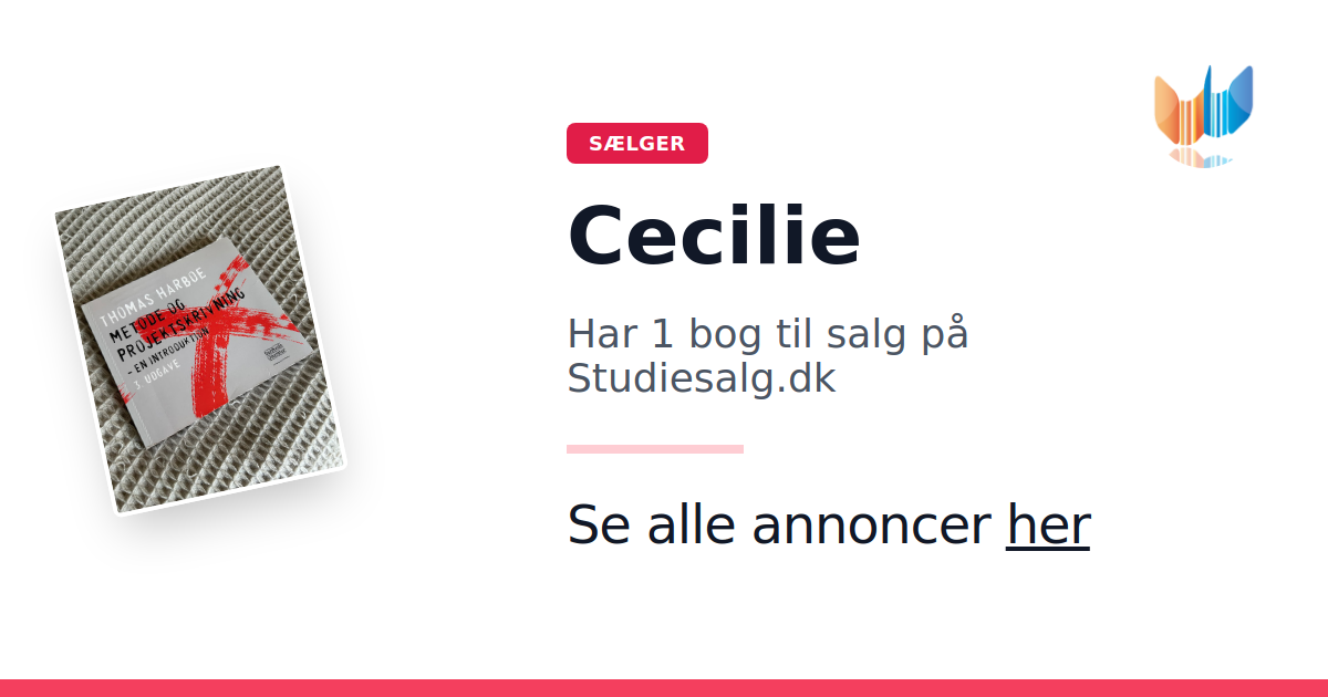 Sæt dine bøger gratis til salg på Studiesalg.dk. Det er tager få minutter, og vi står for betaling og fragt når de bliver solgt.