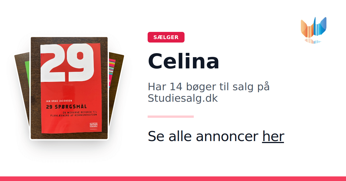 Sæt dine bøger gratis til salg på Studiesalg.dk. Det er tager få minutter, og vi står for betaling og fragt når de bliver solgt.