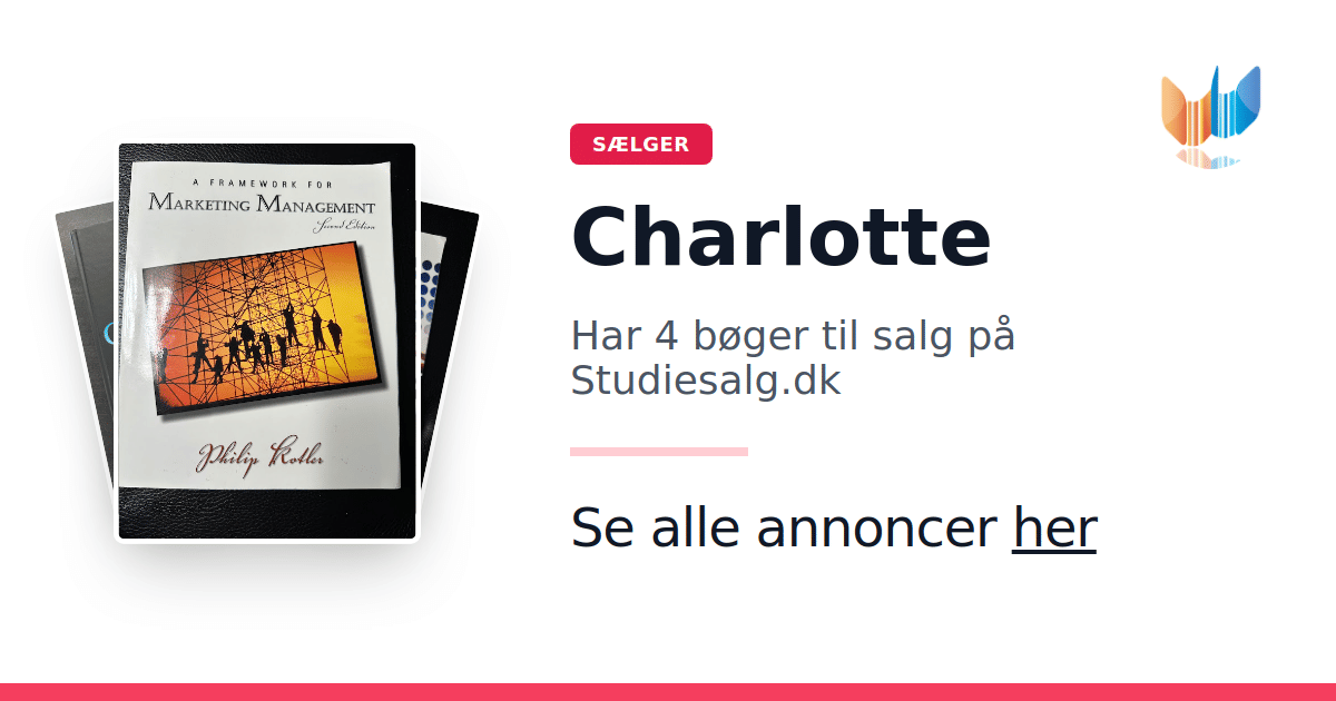 Sæt dine bøger gratis til salg på Studiesalg.dk. Det er tager få minutter, og vi står for betaling og fragt når de bliver solgt.