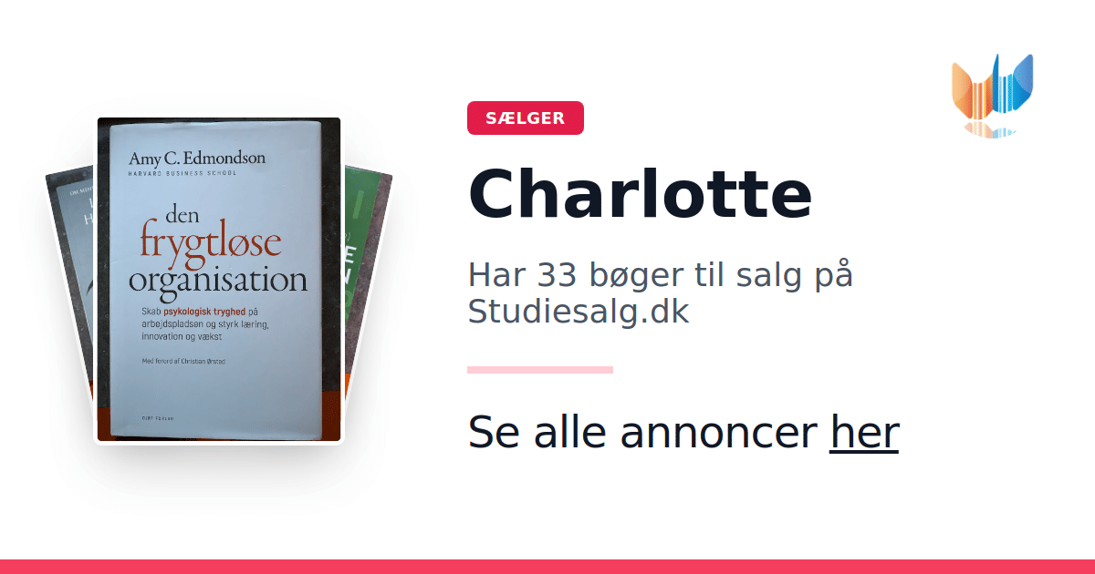 Sæt dine bøger gratis til salg på Studiesalg.dk. Det er tager få minutter, og vi står for betaling og fragt når de bliver solgt.