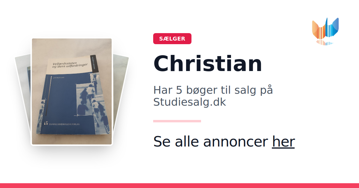 Sæt dine bøger gratis til salg på Studiesalg.dk. Det er tager få minutter, og vi står for betaling og fragt når de bliver solgt.