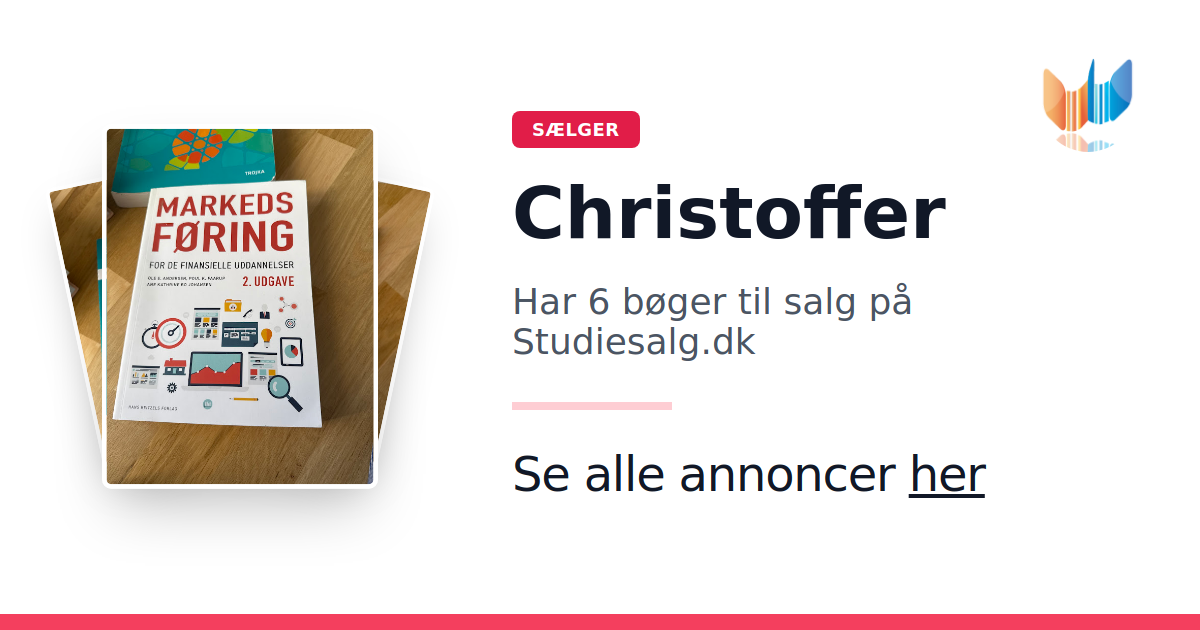 Sæt dine bøger gratis til salg på Studiesalg.dk. Det er tager få minutter, og vi står for betaling og fragt når de bliver solgt.