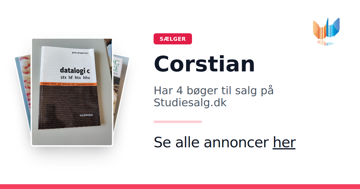 Sæt dine bøger gratis til salg på Studiesalg.dk. Det er tager få minutter, og vi står for betaling og fragt når de bliver solgt.