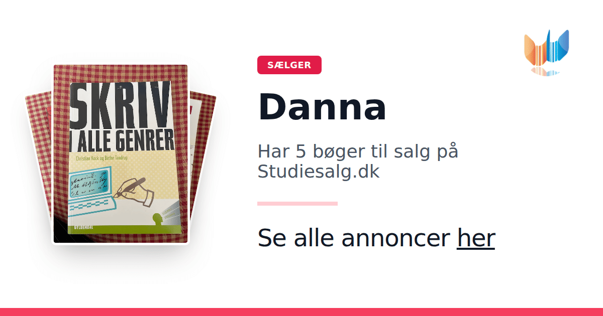 Sæt dine bøger gratis til salg på Studiesalg.dk. Det er tager få minutter, og vi står for betaling og fragt når de bliver solgt.