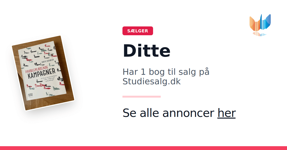 Sæt dine bøger gratis til salg på Studiesalg.dk. Det er tager få minutter, og vi står for betaling og fragt når de bliver solgt.