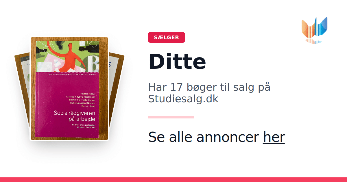 Sæt dine bøger gratis til salg på Studiesalg.dk. Det er tager få minutter, og vi står for betaling og fragt når de bliver solgt.