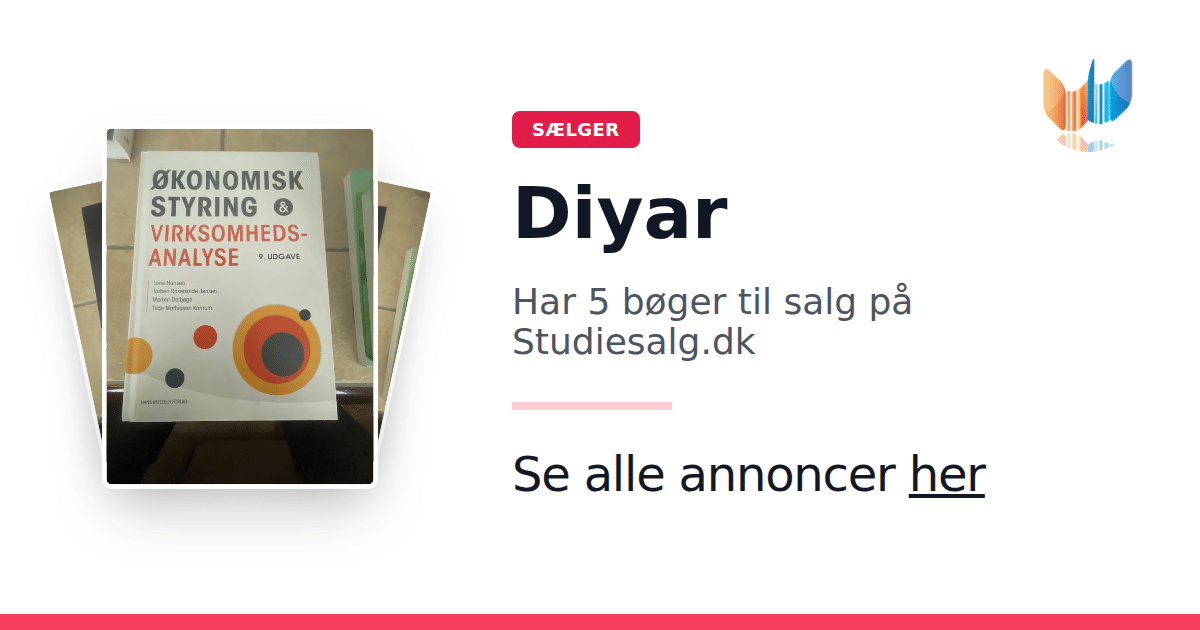 Sæt dine bøger gratis til salg på Studiesalg.dk. Det er tager få minutter, og vi står for betaling og fragt når de bliver solgt.