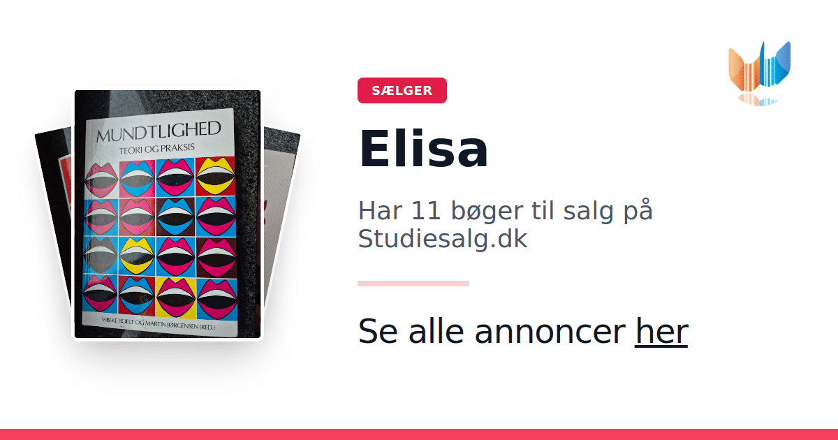Sæt dine bøger gratis til salg på Studiesalg.dk. Det er tager få minutter, og vi står for betaling og fragt når de bliver solgt.
