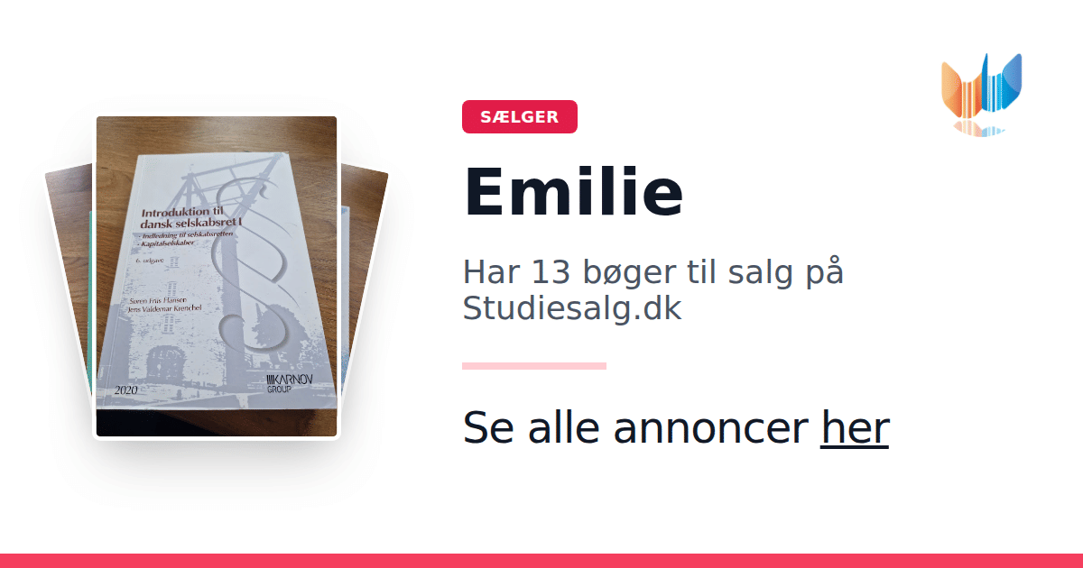 Sæt dine bøger gratis til salg på Studiesalg.dk. Det er tager få minutter, og vi står for betaling og fragt når de bliver solgt.