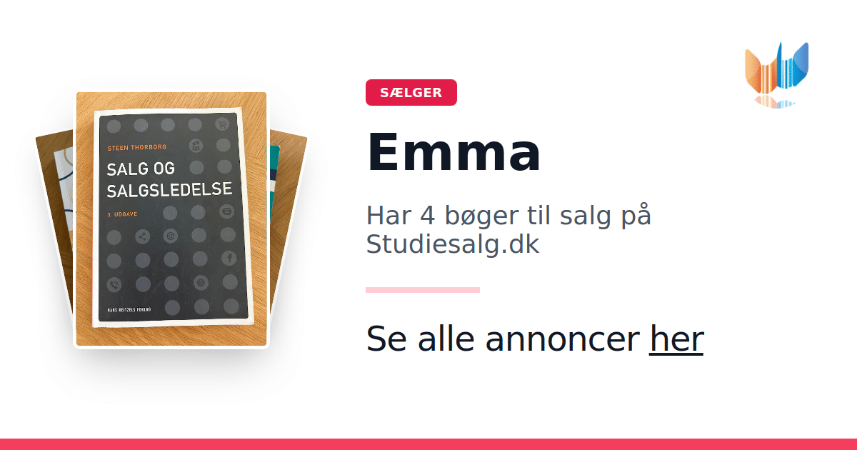 Sæt dine bøger gratis til salg på Studiesalg.dk. Det er tager få minutter, og vi står for betaling og fragt når de bliver solgt.