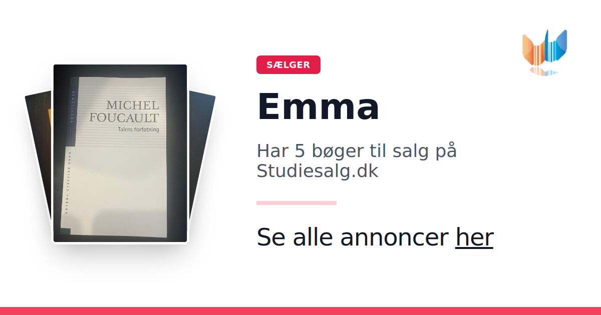Sæt dine bøger gratis til salg på Studiesalg.dk. Det er tager få minutter, og vi står for betaling og fragt når de bliver solgt.
