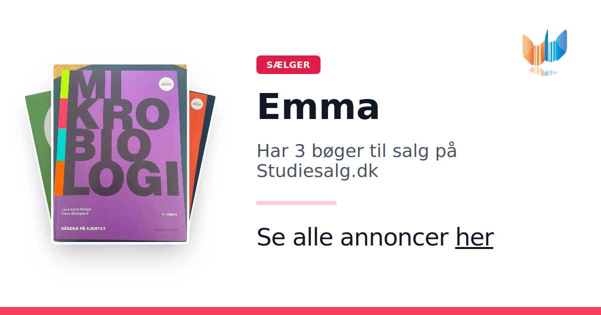 Sæt dine bøger gratis til salg på Studiesalg.dk. Det er tager få minutter, og vi står for betaling og fragt når de bliver solgt.