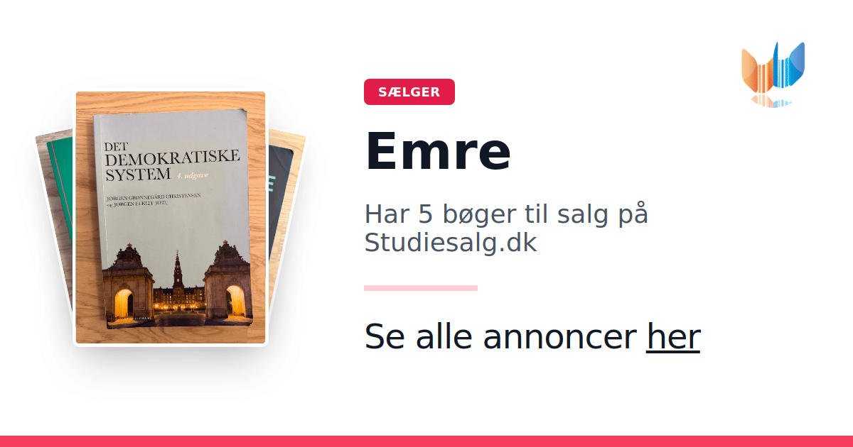 Sæt dine bøger gratis til salg på Studiesalg.dk. Det er tager få minutter, og vi står for betaling og fragt når de bliver solgt.