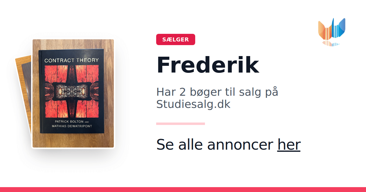 Sæt dine bøger gratis til salg på Studiesalg.dk. Det er tager få minutter, og vi står for betaling og fragt når de bliver solgt.
