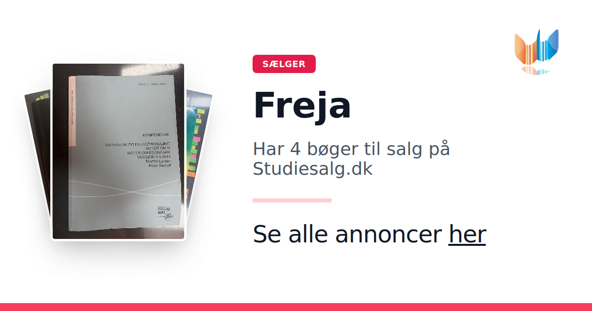 Sæt dine bøger gratis til salg på Studiesalg.dk. Det er tager få minutter, og vi står for betaling og fragt når de bliver solgt.