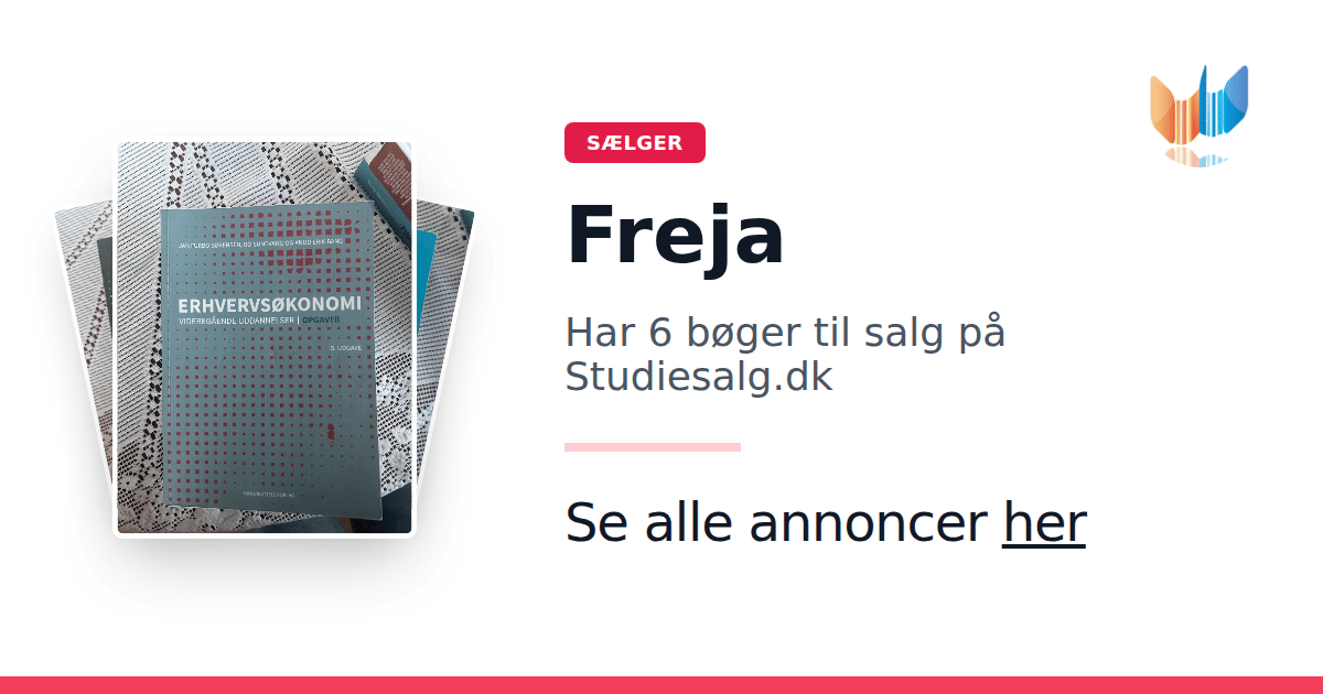 Sæt dine bøger gratis til salg på Studiesalg.dk. Det er tager få minutter, og vi står for betaling og fragt når de bliver solgt.