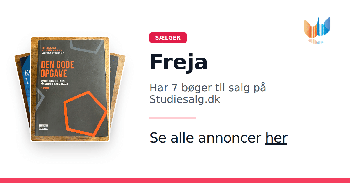 Sæt dine bøger gratis til salg på Studiesalg.dk. Det er tager få minutter, og vi står for betaling og fragt når de bliver solgt.