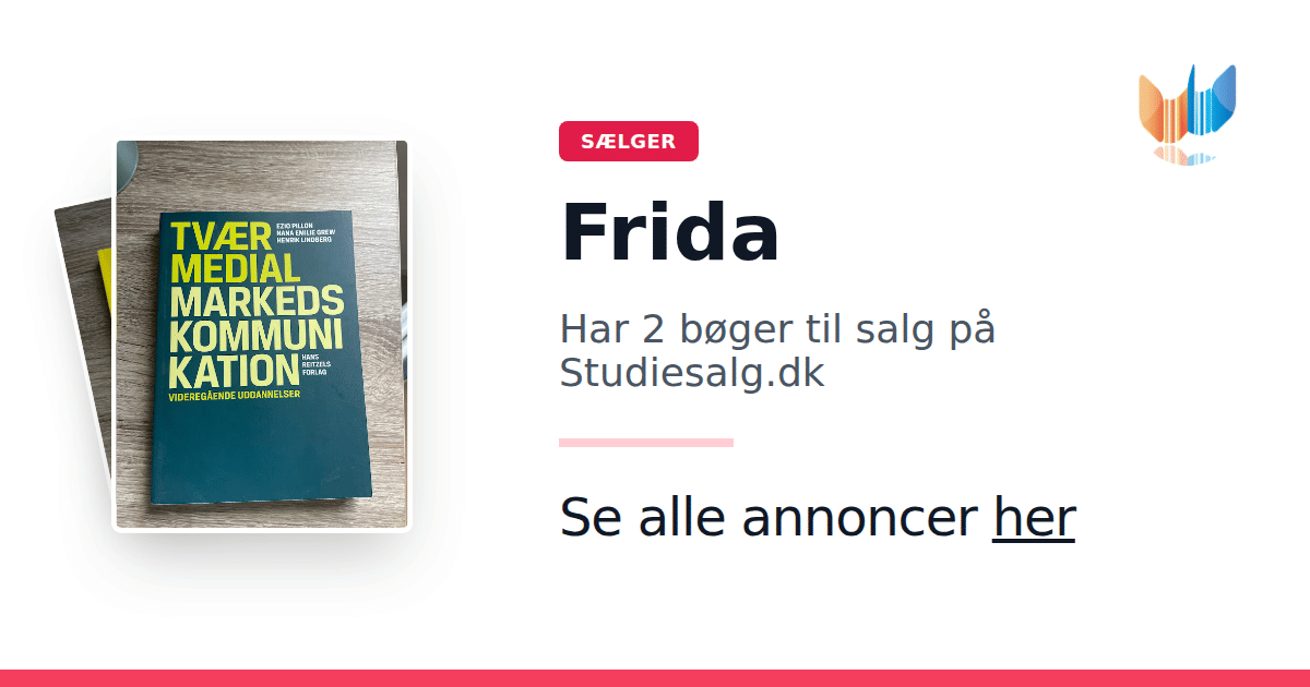 Sæt dine bøger gratis til salg på Studiesalg.dk. Det er tager få minutter, og vi står for betaling og fragt når de bliver solgt.