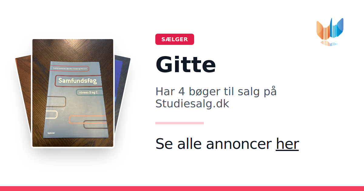 Sæt dine bøger gratis til salg på Studiesalg.dk. Det er tager få minutter, og vi står for betaling og fragt når de bliver solgt.
