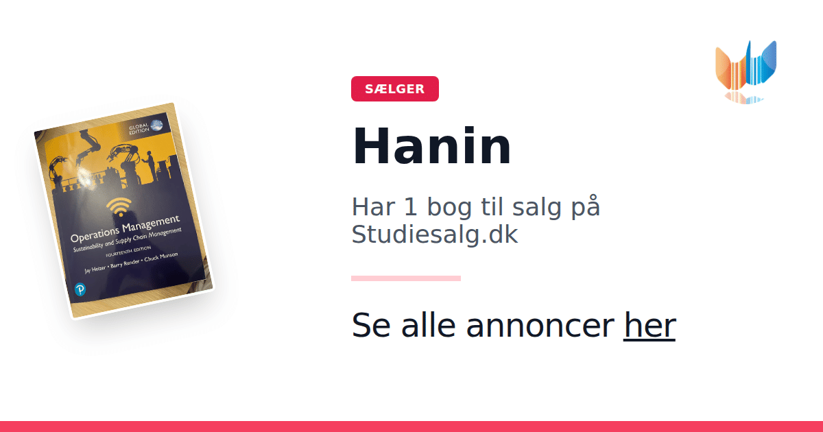 Sæt dine bøger gratis til salg på Studiesalg.dk. Det er tager få minutter, og vi står for betaling og fragt når de bliver solgt.
